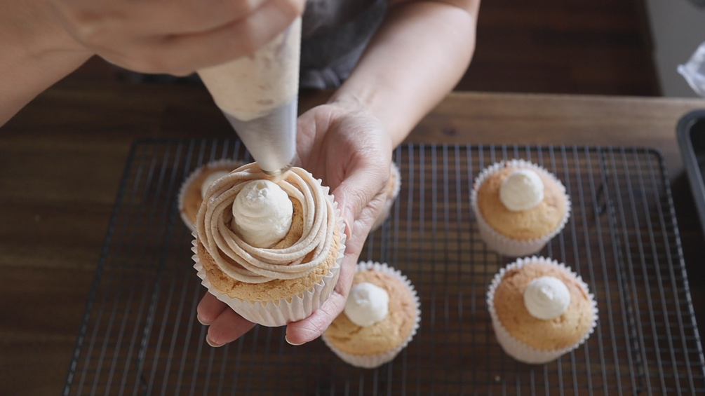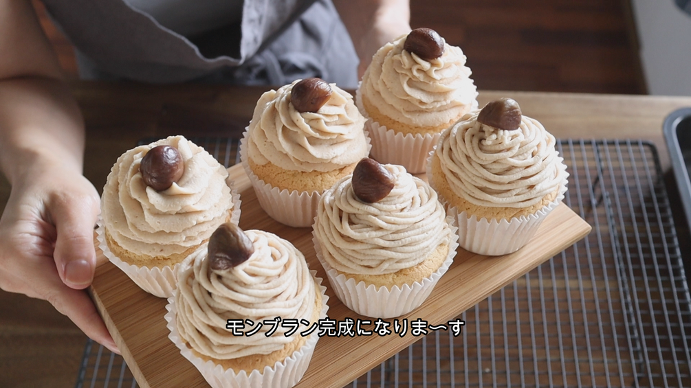Fluffy cupcakes with rich Mont Blanc cream. Mont Blanc cake is one of Japan's favourite cakes. This video also highlights the keys to a good cupcake: beating the egg whites to their optimum, and the right baking conditions for your home.